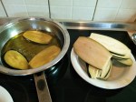 Cut the eggplants, zucchini and potatoes lengthwise in slices appr. 0.5 cm thick.